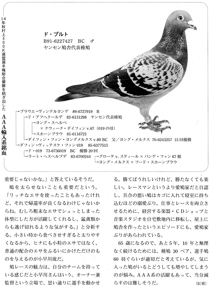 2014年村上400K連合会優勝・愛知静岡地区連盟選手権総合優勝 小早川逸郎鳩舎(ニュー愛知連合会)